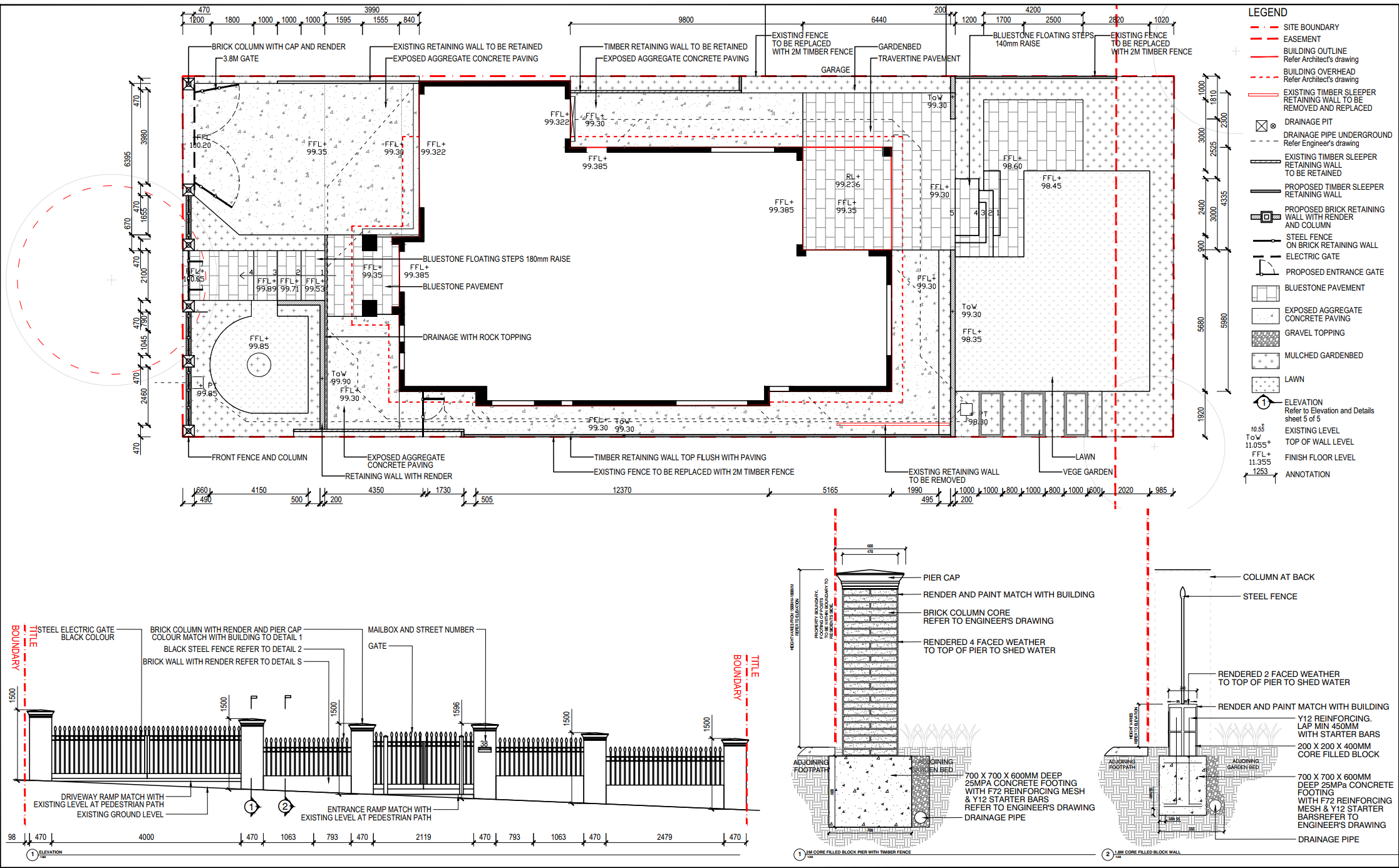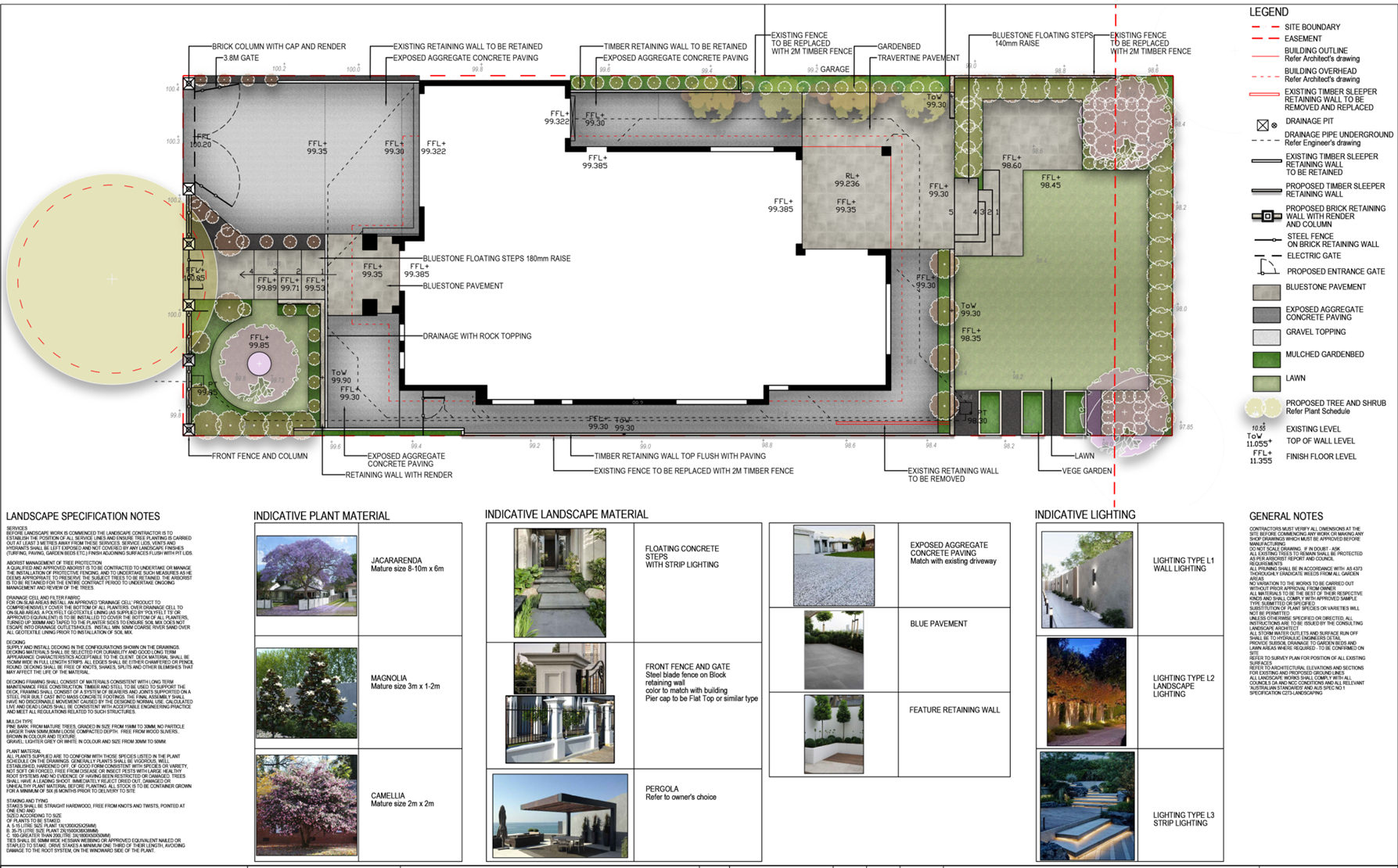 We provide detailed landscape plans and technical drawings for key external elements such as fencing, gates, driveways, entry stairs, paths, and more. Our design process includes an in-depth site consultation, precise measurements, and documentation in line with building codes and drainage requirements. We also support you through the necessary council application process, ensuring a smoother transition into the construction stage.